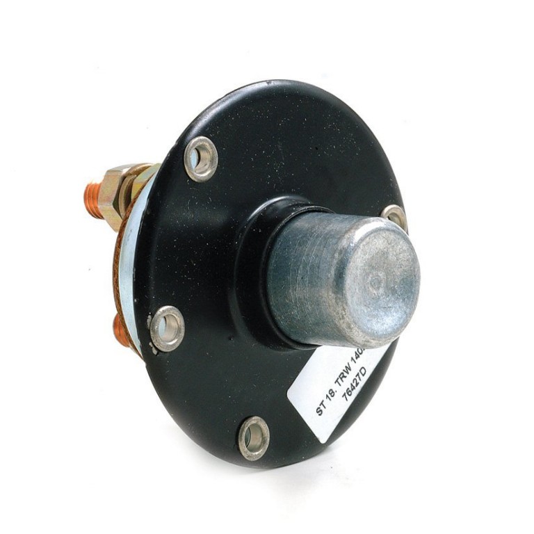 Lucas floor or panel mounted starter switch of the type commonly used in vintage cars or fitted to a panel on a generator set or commercial vehicle. 65 mm diameter. 2x connections on the base for the battery cables. SRB311 ST18
