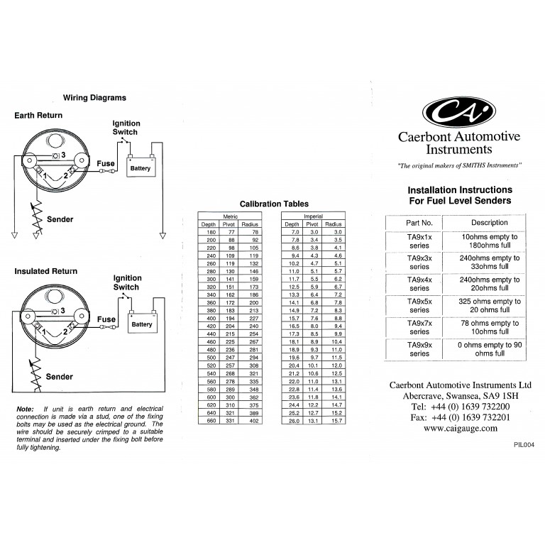 Fits to the top of the tank. Resistor box fits to a vertical rod and can be adjusted to the correct position for the pivot. Rod can then be cut to length. The float fits to the float arm and can be adjusted to the required position. Flange is 5 hole fitting. Comes with full instructions. As supplied to AC Cars right up to and including the Mk 4. Adjustable between 6 and 24 earth return 10-180 ohms. Blade terminals Click here to see our PDF on testing fuel senders.