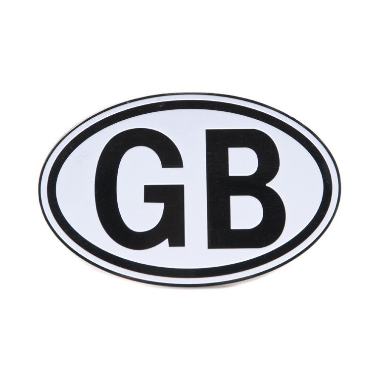 Plate with black letters on a white oval background with an adhesive backing. 105mm x 69mm
