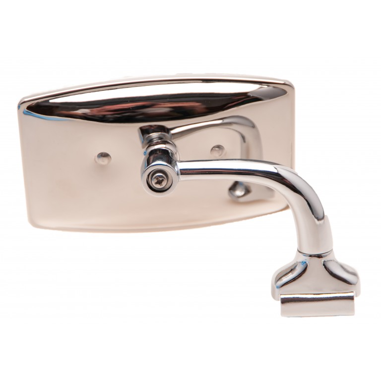 Oblong Chrome overtaker mirror with right angled chrome arm. 115mm x 75mm