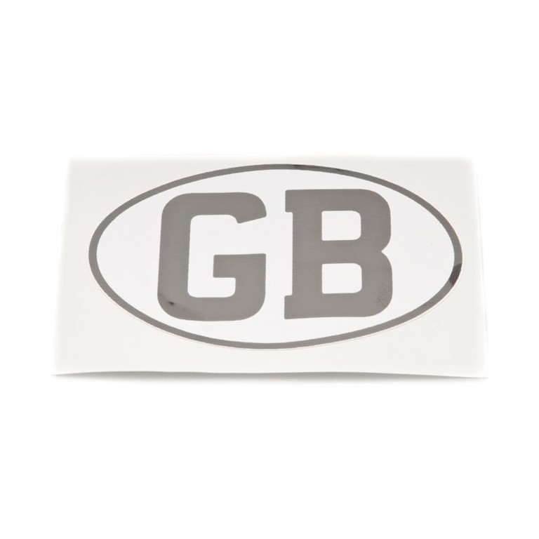 Black letters on a white oval background with an adhesive backing. 97mm x 63mm