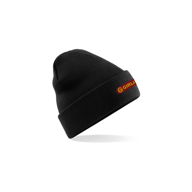 Girling Cuffed Beanie Black with Embroidered front with Girling logo. Double layer knit. Cuffed design for optimal decoration. Machine wash warm iron on low heat. 72g weight. 100% soft-touch acrylic.