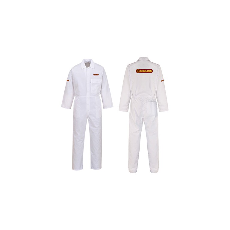 Girling Coverall Embroidered with the Girling logo to the left chest and right sleeve and Girling patch to the back. White in size 3 Xtra Large. This smart coverall features a chest pocket with flap for secure storage and two side pockets. Comfort practicality and durability are ensured. Non shrinking to ensure that this style maintains its shape wash after wash. Concealed stud front for easy access. Quick and easy side access. 4 pockets for ample storage .Rule pocket. Side pockets. Half elasticated waist for a secure and comfortable fit. Bartacked at all stress points. 40+ UPF rated fabric to block 98% of UV rays. 65% Polyester 35% Cotton 245g.