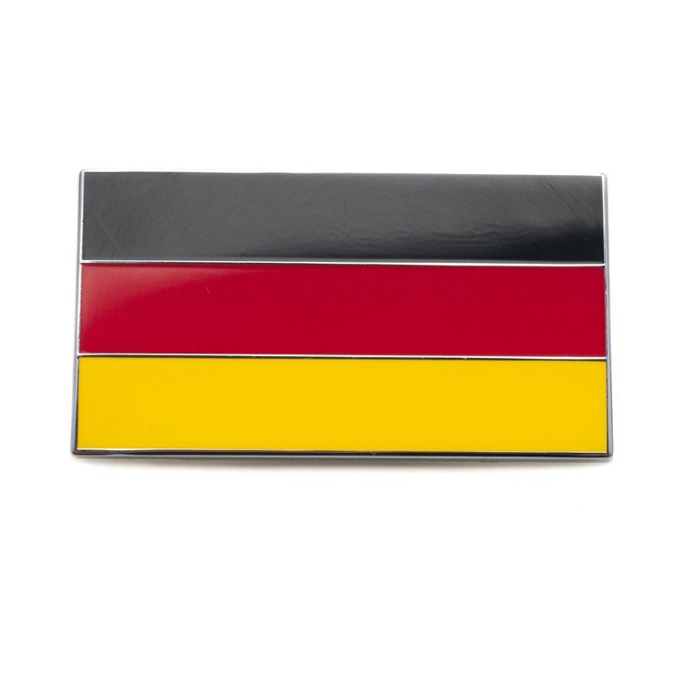 A metal enamelled badge with an adhesive backing showing the flag of Germany. 50mm x 29mm
