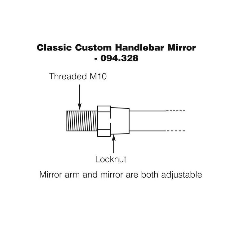 Pair of Handlebar Rear View Mirrors with the 10mm standard thread which should fit your mirror mount. Mirror head size 130mm x 75mm on long stem. If you have no mirror mount refer to 094.329