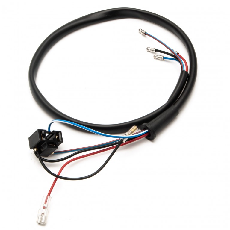 Headlamp and side light wiring harness for Halogen type light units with insulated spade terminals for our light units P700/H. This wiring harness has a grommet to push into the hole in your headlamp bowl and includes the side light bulb holder. Other types are available for lamps with metal reflectors and those without sidelights. NOTE : Some lamps with metal reflectors have a rubber grommet to retain the side light bulb holder - in these cases, this is the item to use