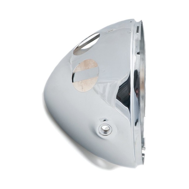 Lucas original chrome Headlamp Shell with apertures for switch and warning lights. Supplied without rim