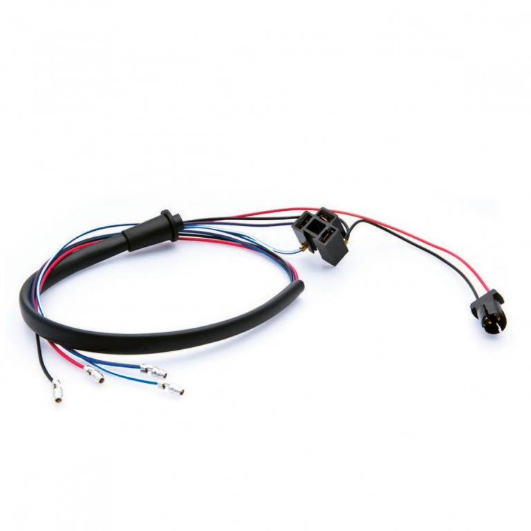 Headlamp and side light wiring harness for Halogen type light units with plastic reflectors. This wiring harness has a grommet to push into the hole in your headlamp bowl and includes the side light bulb holder. Other types are available for lamps with metal reflectors and those without sidelights. NOTE : Some lamps with metal reflectors have a rubber grommet to retain the side light bulb holder - in these cases, this is the item to use