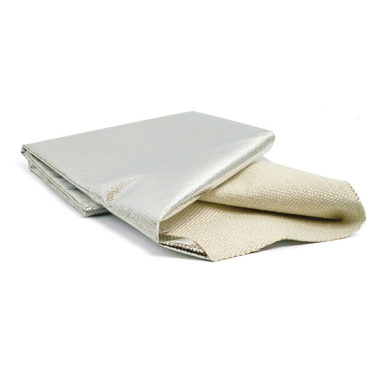 Constructed in a high temperature fibreglass material capable of withstanding 600C on one side and radiant temperatures of up to 1000C on the aluminised side, it has many uses. Can be used to protect the drivers compartment, engine auxiliaries, areas where excessive heat can blister paint, and where exhaust pipes run too close to the floor or the fuel tank. Cut with a scissors or sharp knife and apply with high temperature glue, screws, rivets, velcro or straps. Size 914 x 1016mm (36 x 40).
