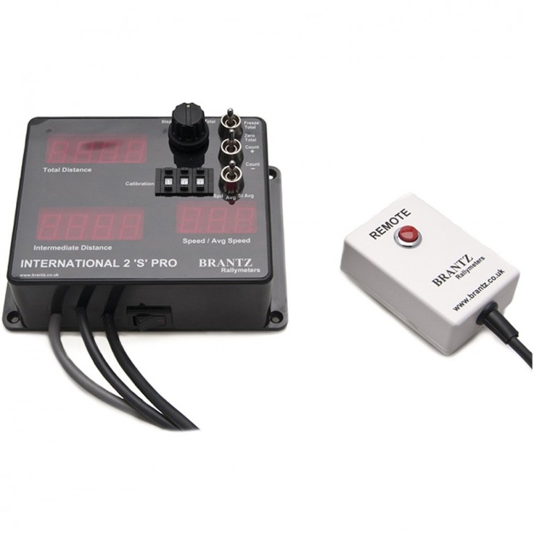 Offering all the features of both the International 1 and 2 Tripmeters, this unit adds a third display showing selectable speed or average speed, as well as intermediate distance and a total, together with a remote reset button allowing the Navigator to Zero the intermediate The third toggle switch on the face allows the selection of the speed or average speed as required. As with the International 2, the STEP knob on the front allows adjustment of the Total to align with a given value eg a distance provided by the organisers at a certain point. As with all Brantz products, a power conditioner is recommended and a variety of sensors is available.