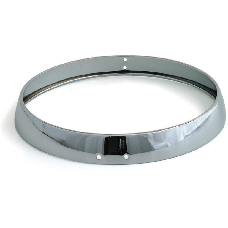 Head lamp rim as fitted to Jaguar XK120. High quality reproduction of Lucas 553620 chrome plated on copper. Screw fitting. Measures 219 mm external diameter