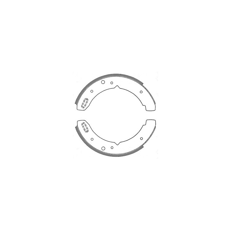 Set of two Brake Shoes for the transmission brake operated by the hand brake lever on early Land Rover 88 and 109 models from 1950-1983. 9 in diameter by 1 1/4 in wide. These brake shoes are made in England by MINTEX and are asbestos free