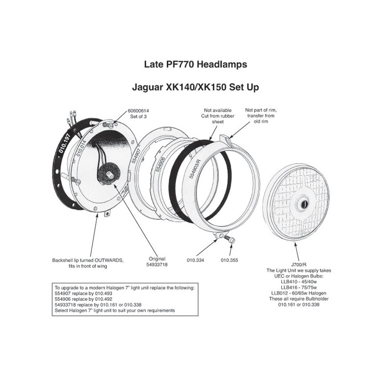 Rubber gasket to fit between the headlamp backshell and the wing or front panel when fitting late type PF770 backshell.