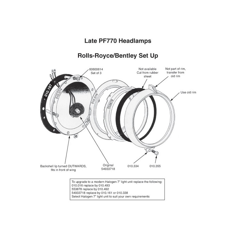 This is the rim that forms the rear part of the mounting for the lamp unit, and locates on the 3 adjusting screws. Use in conjunction with the retaining rim. For Late PF770 Headlamps as fitted to Rolls-Royce, Bentley, Jaguar, Bristol, Aston Martin and Jowett. Scroll down for more information