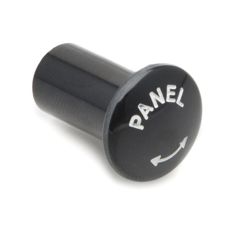 Lettered PANEL with arrows as shown. As fitted to late TR3a's. Fits the rotary rheostat switch. We keep a range of knobs of the type fitted to the earlier TR's