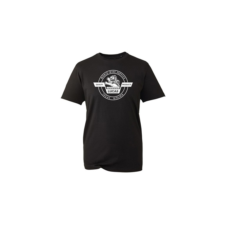 Lucas Lion T-Shirt Lucas Lion DTG printed t-shirt. Black in size 3 Xtra Large. Fashion fit. Ribbed collar. Taped neck. Side seams. Twin needle stitching.100% organic combed ringspun cotton. 145gsm.