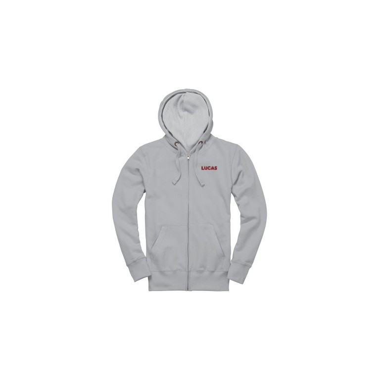 Lucas Text Zip-Up Hoodie Heather Grey in size Large. Embroidered Lucas Text logo to the left chest. Kangaroo pocket with concealed phone pocket. Soft feel fabric with stretch for extra comfort. Self Colour waffle hood lining. Twin needle stitching detail. Fashionable long cuff made with 2by1 rib. Self colour nylon zip with zip cover.280gsm fabric. 35/65 poly cotton blend.