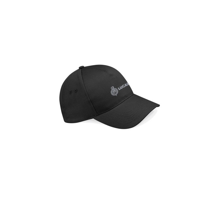Lucas Logo 5 Panel Cap in Black Embroidered to the front with Lucas logo. Rip-strip. size adjuster. 5 panels. 75g weight. 100% cotton drill material.