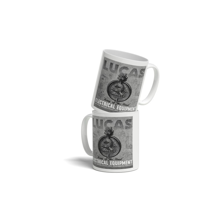 Lucas King of the Road Mug (Single Mug) 330ml ceramic mug with a full colour wrap around print Dishwasher resistant up to 800 wash cycles at 45°C. Bright white in colour and with a high gloss finish.