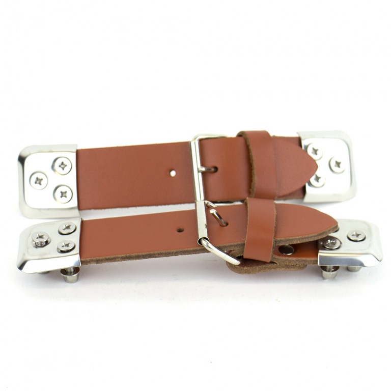 A pair of Leather Bonnet Straps. These straps are 1.1/4 inches wide and a maximum of approximately 8 inches long.