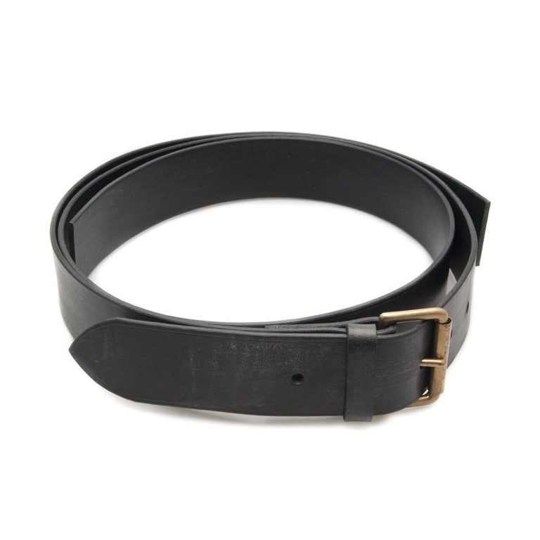 Leather Strap 51mm (2 in) wide with substantial brass buckle. It comes in two halves, the half with the buckle and the half with the holes to suit the buckle. As supplied the length is adjustable via the buckle from 2.055 metres (6 ft 9 in) to 1.880 metres (6 ft 2 in) but you can shorten it further by cutting and trimming the ends