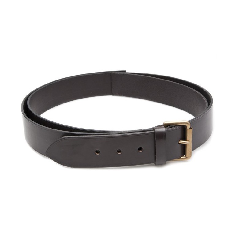 Leather Strap 51mm (2 in) wide with substantial brass buckle. It comes in two halves, the half with the buckle and the half with the holes to suit the buckle. As supplied the length is adjustable via the buckle from 2.055 metres (6 ft 9 in) to 1.880 metres (6 ft 2 in) but you can shorten it further by cutting and trimming the ends