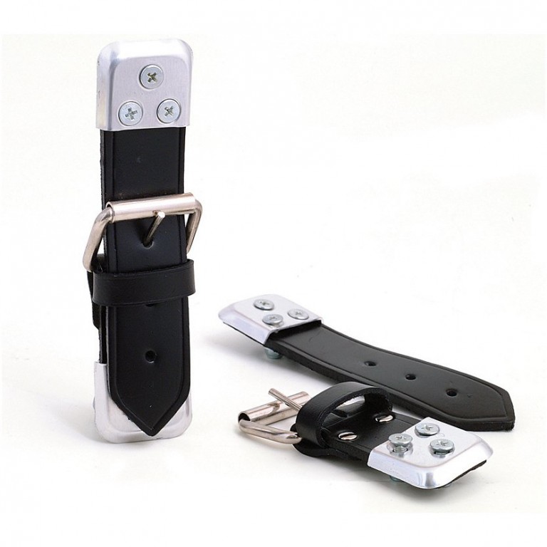 A pair of Leather Bonnet Straps. These straps are 1.1/4 inches wide and a maximum of approximately 8 inches long.