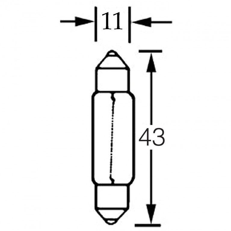 Festoon Bulb 12V 5W 43mm x 11mm. Useful for side lamps and interior lamps LLB239
