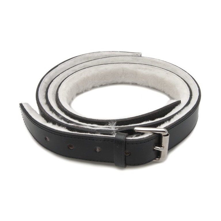Black Leather Strap 38mm (1 1/2 in) wide with substantial chrome plated buckle and wool lining on the inside of the strap to help reduce damage to the paintwork on your bonnet. It comes in two halves, the half with the buckle and the half with the holes to suit the buckle. As supplied the length is adjustable via the buckle from 2.055 metres (6 ft 9 in) to 1.880 metres (6 ft 2 in) but you can shorten it further by cutting and trimming the ends