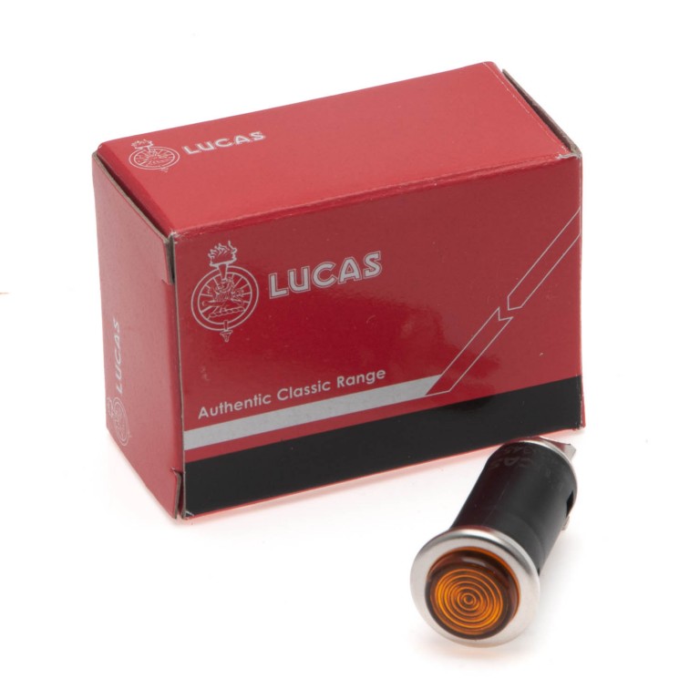 Lucas 12 volt Amber dash warning lamp. Push fit into 13mm hole.