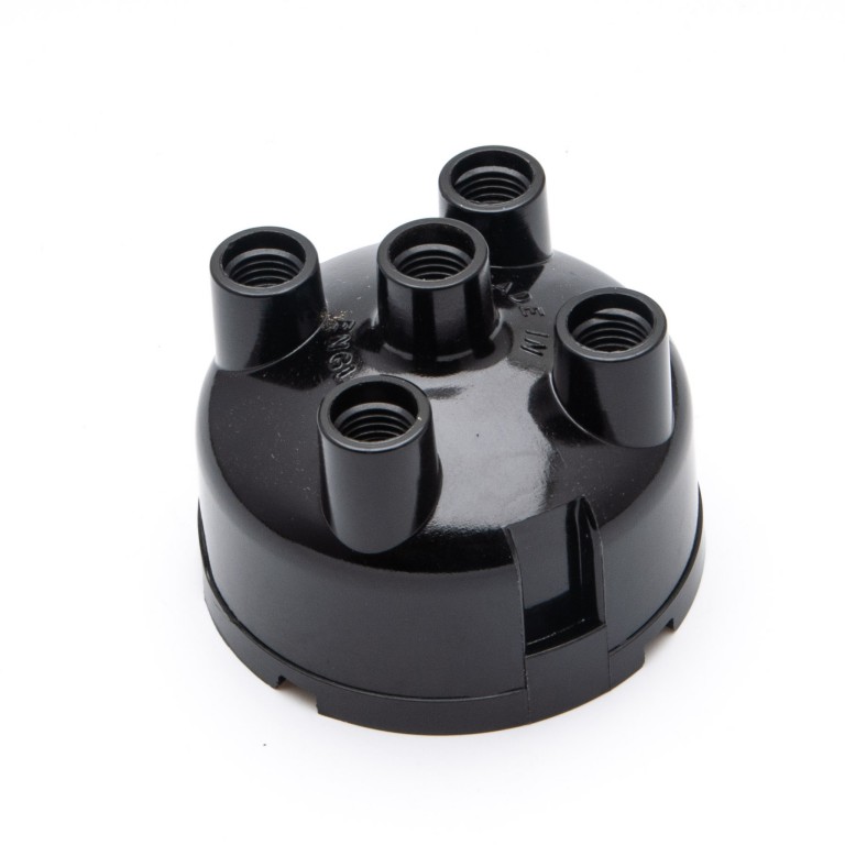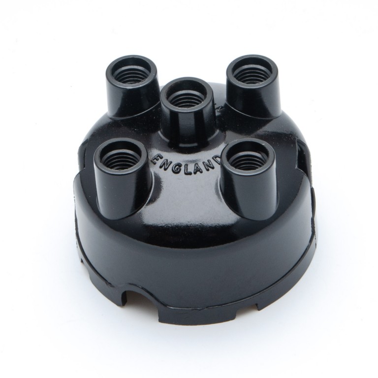 Distributor cap to fit the D3A4 & DVX4A Lucas distributor. This cap is suitable for use with screw-in type HT lead fittings, where separate acorns and split brass washers are used, all of which are available to purchase separately if required. This cap can be used in place of Lucas part numbers DDB163, 408369, and Remax ES214.