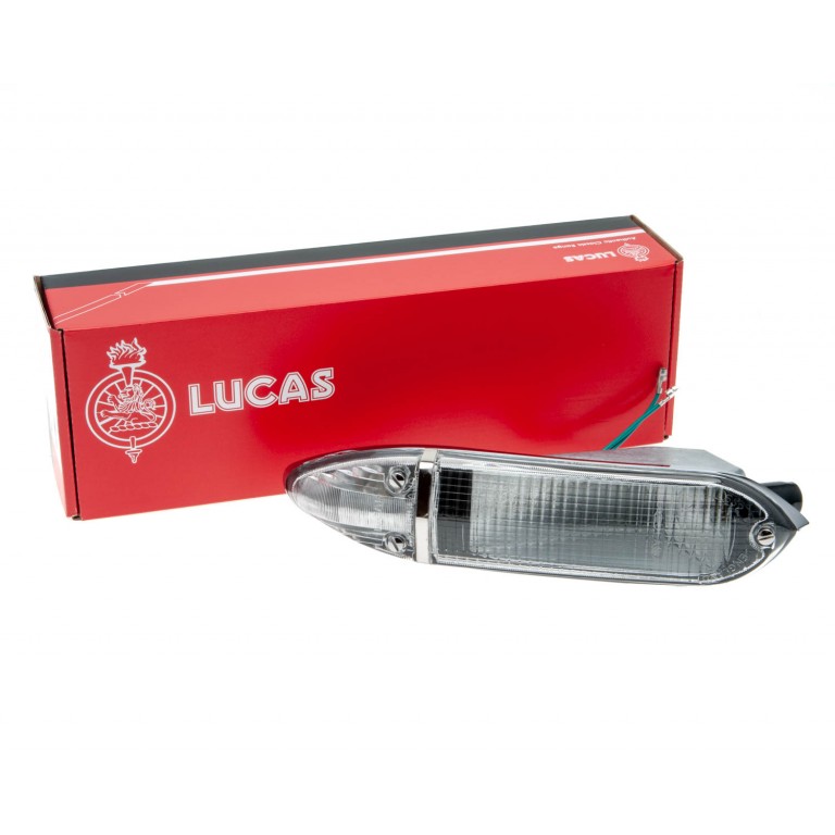 Lucas L652 front left hand side and indicator lamp - all clear lens.