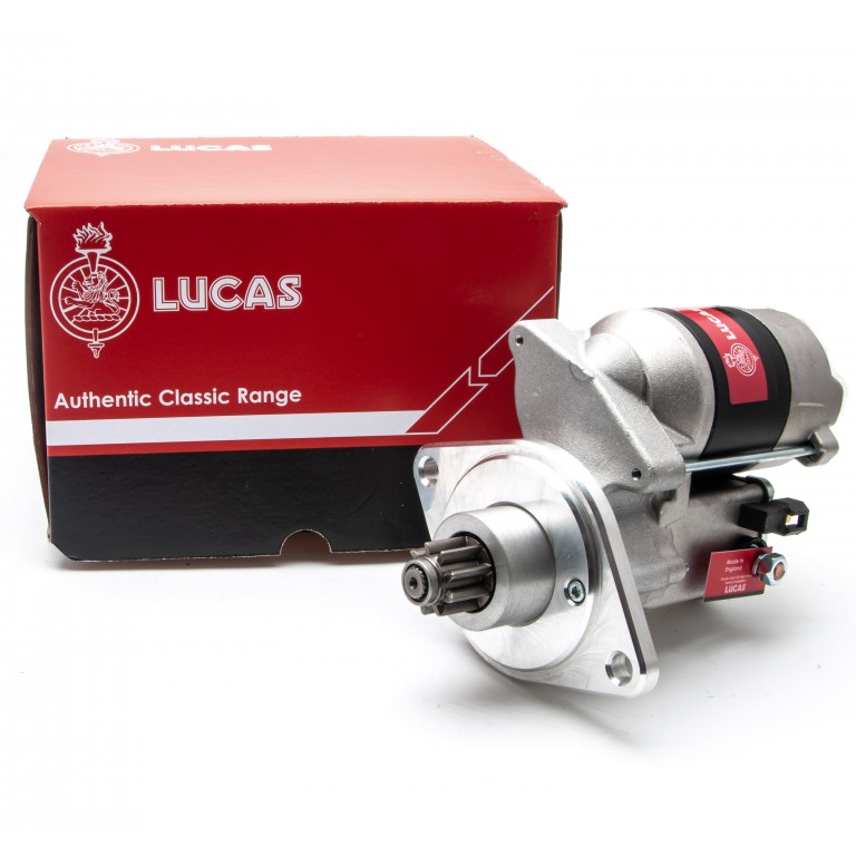 Lucas up-rated, lightweight starter motor, fits Jaguar Mk II and XK150 Automatic. 9 toothed gear.