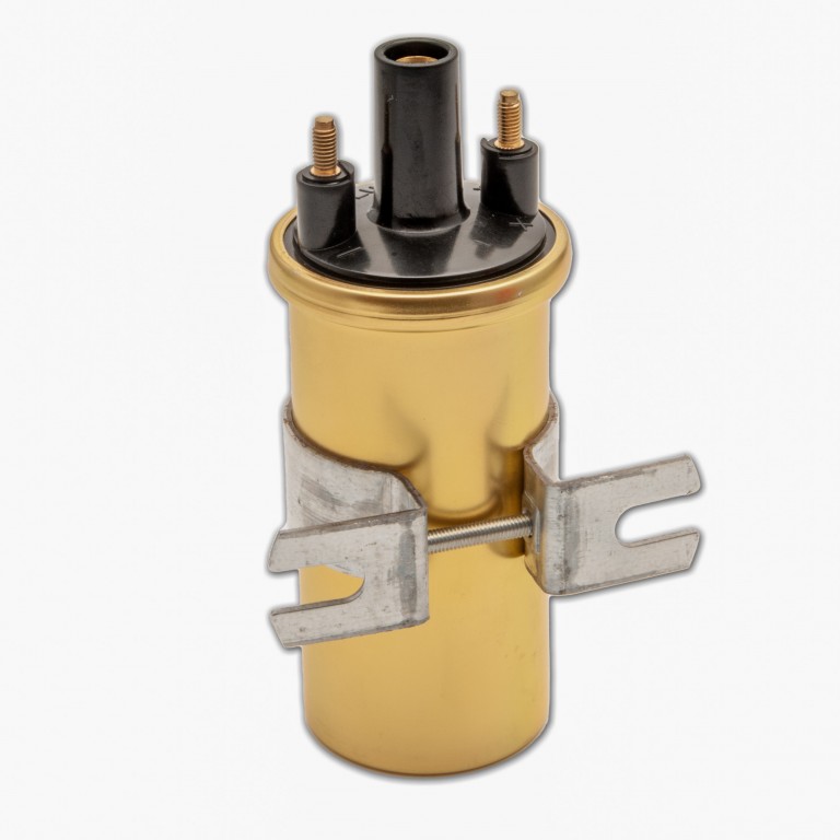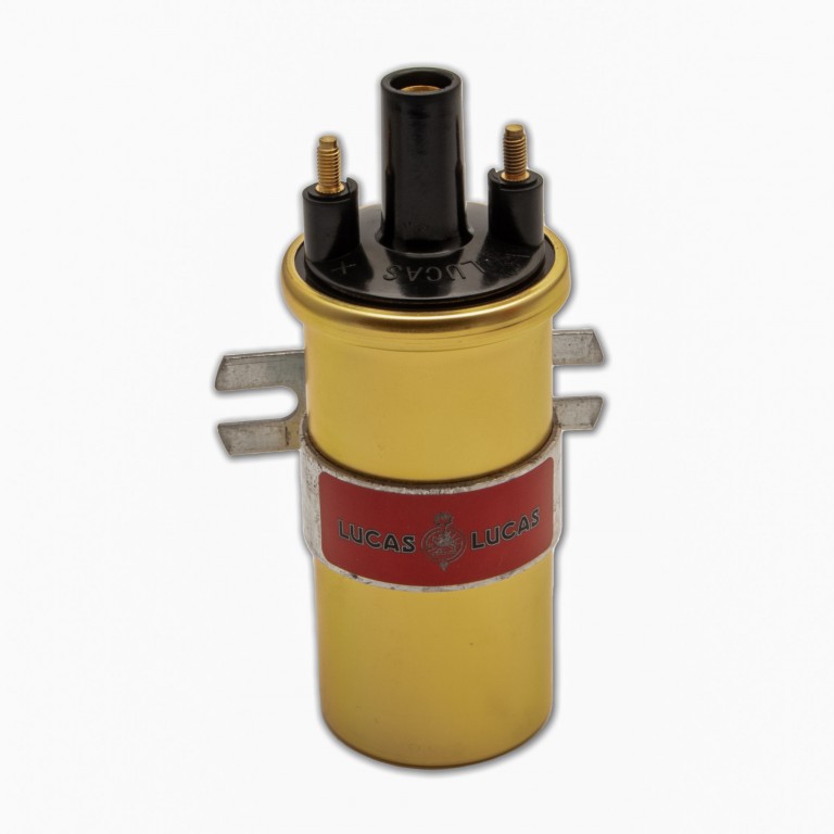 High output 12 volt Lucas Sports coil with a push-in center lead. Supplied with the mounting bracket and ready to fit. Wires attached via 5mm ring terminals, or adaptors (included) to take Lucar terminals.