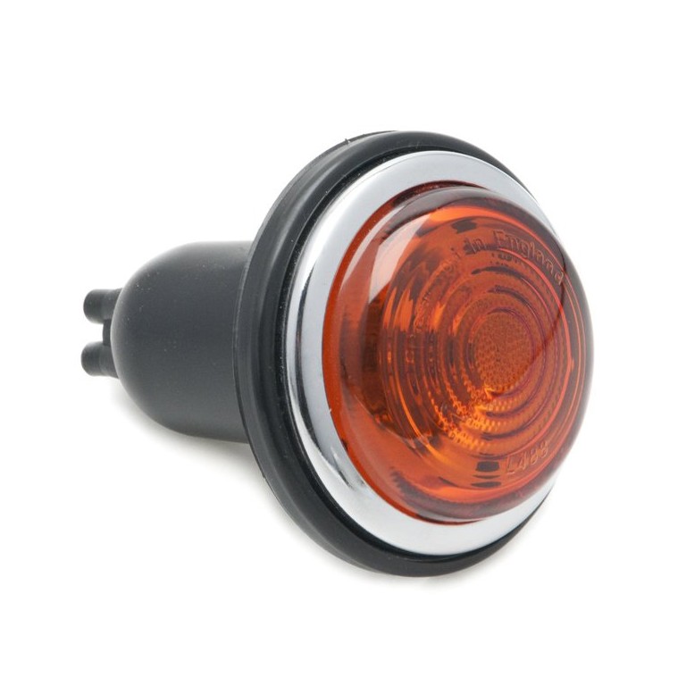 The classic Lucas L488 pattern lamp, as used from the late 1940''s onwards and fitted to many different vehicles, including Land Rover, Lotus, and Morris Minor. This version is supplied with a double contact 12 volt (BAY15D) bulb. A six volt bulb can be substituted and needs to be ordered separately. Supplied with a glass lens exactly as the original. Rim diameter 71.5 mm, requires hole 33.4 mm diameter. This lamp can be used in certain European and US Markets where an Orange side lamp is required.