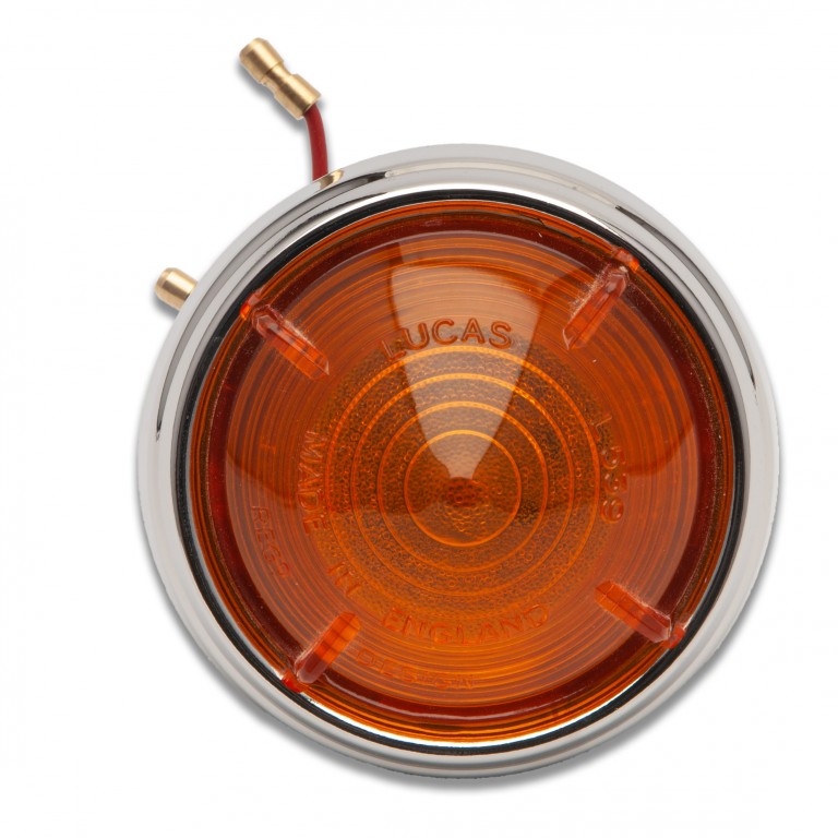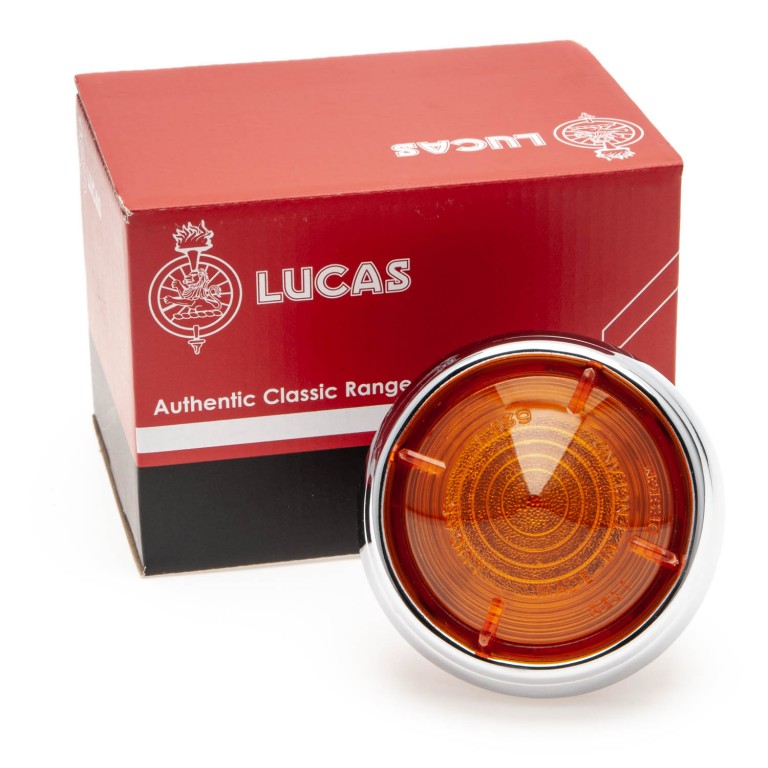 This lamp has original genuine LUCAS lenses, which are pressed into the outer rim. The lamp is supplied with a double contact bulb providing both side and flasher lamp facility.