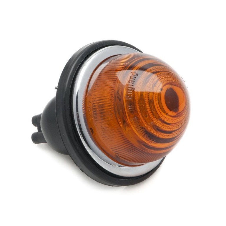 The classic Lucas L594 pattern lamp, as used from the late 1940's onwards and fitted to many different vehicles, including Land Rover, Morgan, and Morris Minor. This version is supplied with a sinlge contact 12 volt (BA15S) bulb. A six volt bulb can be substituted and needs to be ordered separately. Supplied with a glass lens exactly as the original. Rim diameter 71.5 mm, requires hole 33.4 mm diameter