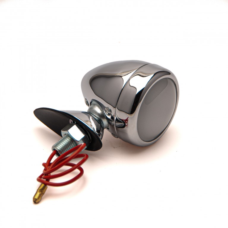 A reproduction of the Lucas LD109 Sidelamp that was popular in the vintage period. Chrome plated with red dot and frosted glass lens. Single filament. Normally mounted on the top of the wing. Rim pulls off to change the bulb. Used without the baseplate on the Ferguson T20 tractor. Uses LLB233