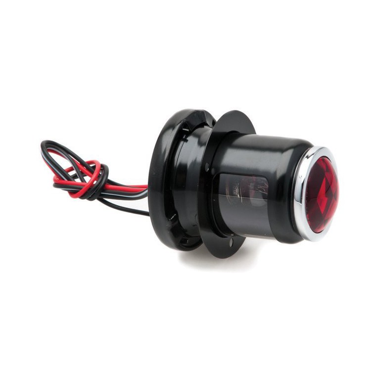 Reproduction of Lucas MT110 converted to Stop, Tail and numberplate lamp. Also had Lucas part no. 53009. The red lens has a chrome rim 40 mm diameter and the fitting flange is approx 65 mm diameter. As fitted to motorcycles from the 1930's to the 1950's and can also be used on cars. Supplied with a 12 volt bulb. A 6 volt bulb is available to purchase separately.