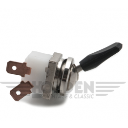 Genuine Lucas general purpose off-on toggle switch with black lever and chrome bezel. Requires hole 14.5mm diameter. Rated at 5 amps on 12 volt systems SPB200, BCA4291, DQ4501, RTC0430