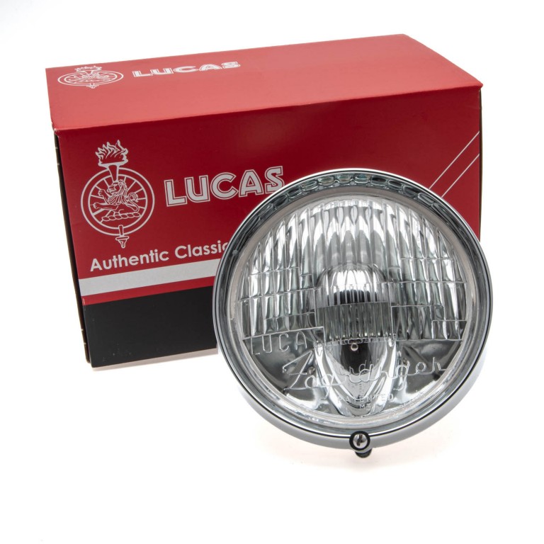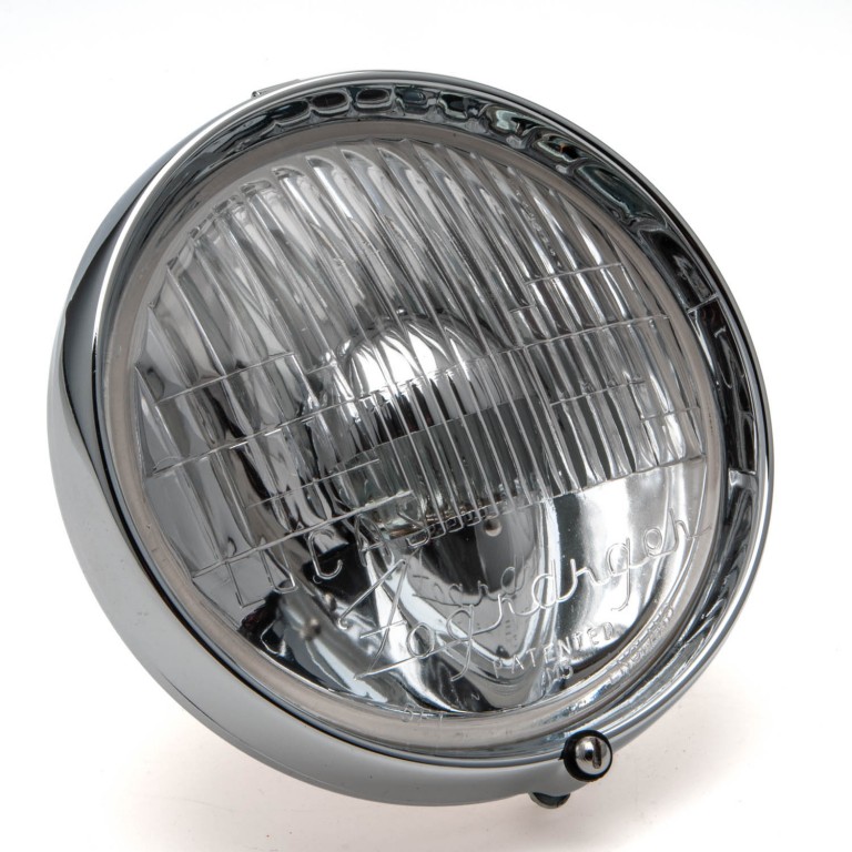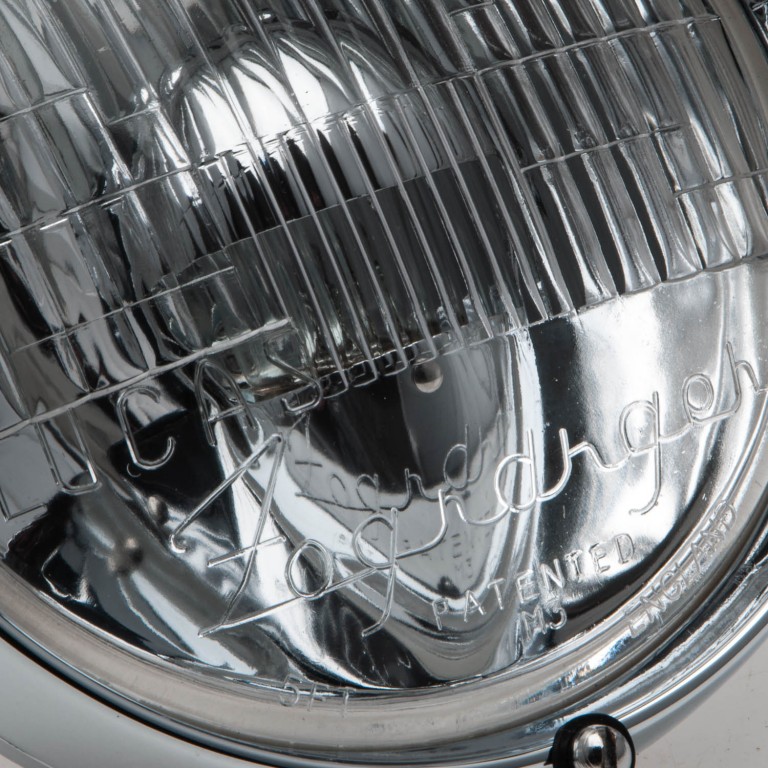 Lucas WFT5 Fogranger Foglamp as fitted to Mk II Jaguars and Vanden Plas 1300. This lamp mounts in a similar way to the WLR and WFT lamps, in that there is a single hollow bolt on the rear, through which the wires pass.