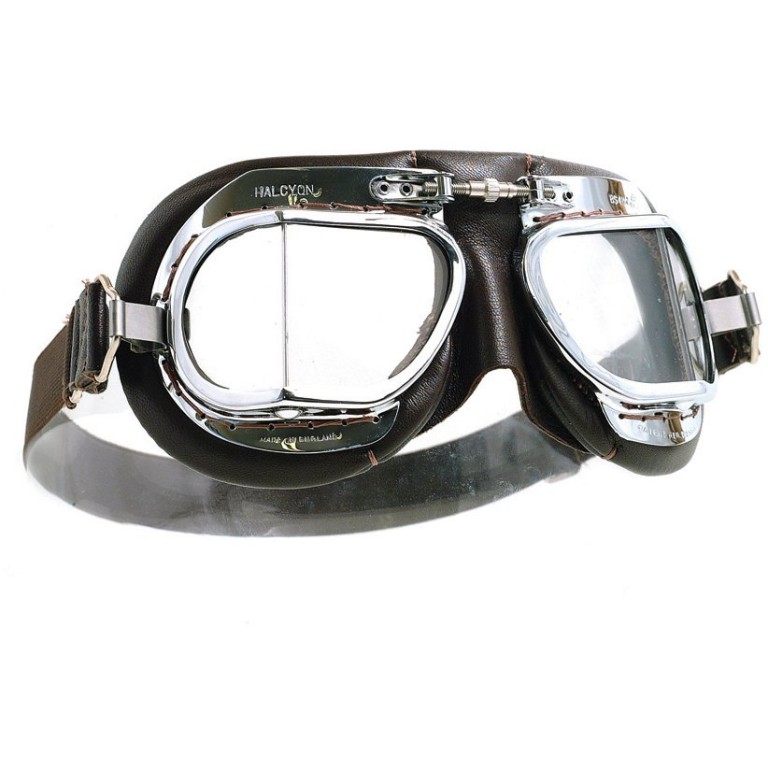 These Goggles have chromed brass frames with louvres to prevent misting. Hand stitched brown leather padded face mask with knurled screw nose bridge adjustment. Quality elasticated coloured headband with snap-on clips. Moulded and coated polycarbonate replaceable lenses tested to BS EN138. Supplied with an Instruction Leaflet. There is now also a Compact version refer to 050.677