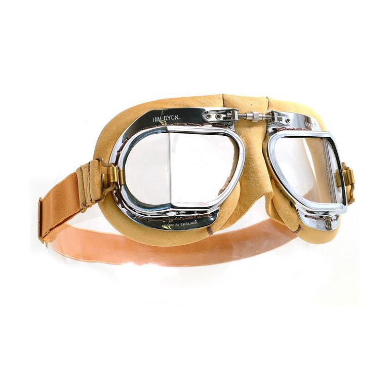 These Goggles have chromed brass frames with louvres to prevent misting. Hand stitched tan leather padded face mask with knurled screw nose bridge adjustment. Quality elasticated coloured headband with snap-on clips. Moulded and coated polycarbonate replaceable lenses tested to BS EN138. Supplied with an Instruction Leaflet.