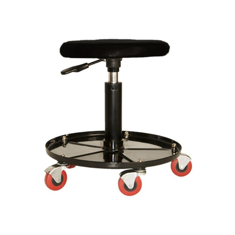 Height adjustable stool with PVC top (380-490mm) which is padded and sprung for comfort. Supported on five castors to enable you to move around. Base acts as a tool storage tray. Useful for many jobs around your car or motorcycle in the workshop. Exceptionally useful in conjunction with our car lift