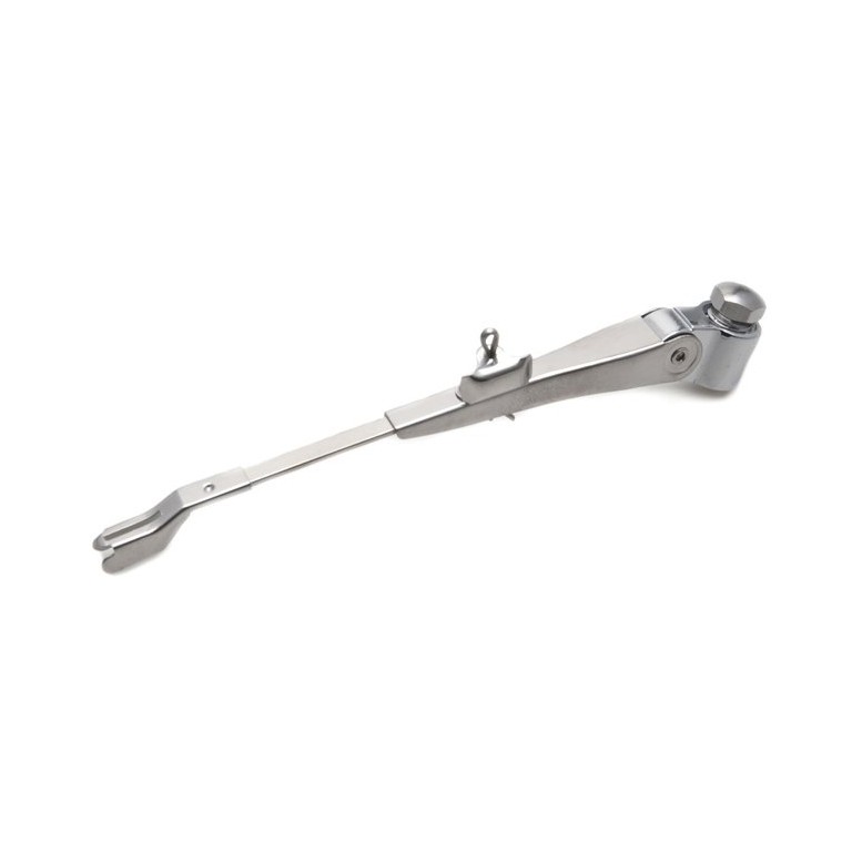 MG type, 150 mm long. Collet fits 3/16 (approx 5 mm) diameter shaft and tightens with nut on top. This is the left hand arm, for right hand refer to 040.117. Use with Wiper Blade 040.115, 040.116 or 040.125 and secure with Peg 040.114