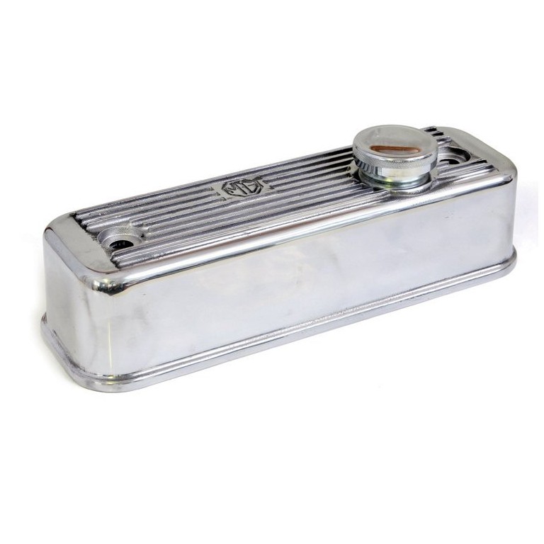 Polished aluminium, with chromed oil filler cap and 'MG' cast into the Rocker Cover.