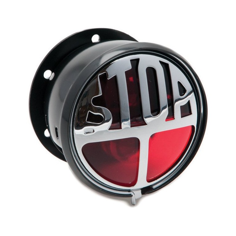 Reproduction of the Miller Stop/Tail/Number Plate Lamp as fitted to Vincent B & C models. Supplied with 12 Volt ,10 watt bulb. 6 volt bulbs are available to purchase separately. Diameter 70mm, distance between mounting bolts 40mm.