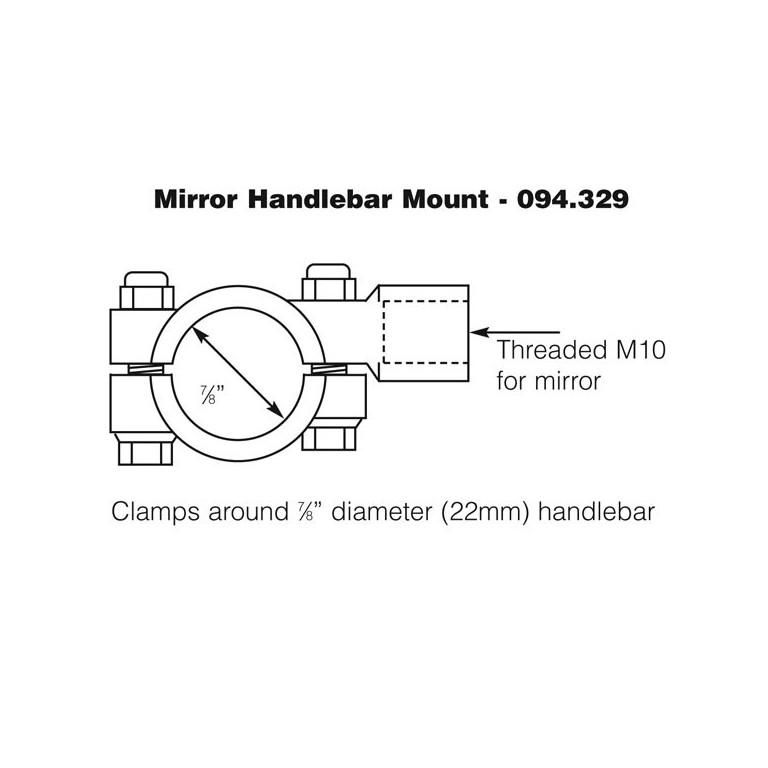 For use with mirrors with 10mm standard thread, including 094.327 and 094.328. Clamps on to 22mm diameter handlebars