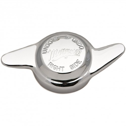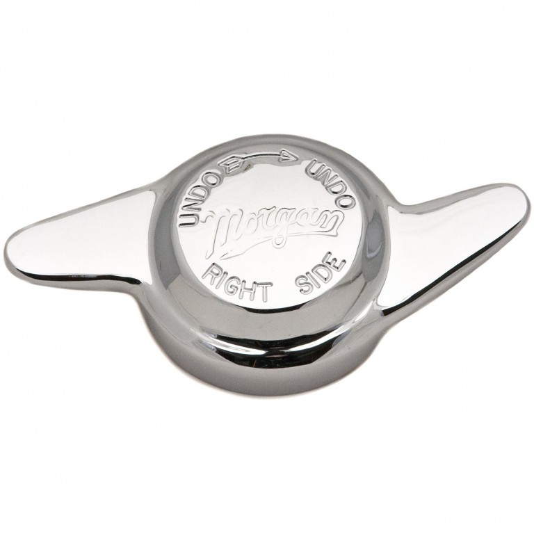 Quality Wheel Spinner (or Hub Nut) for Morgan Right Hand Side. The thread on the hub is 42 mm diameter, 8 threads per inch. With Morgan logo and as used on some Morgans from 1949