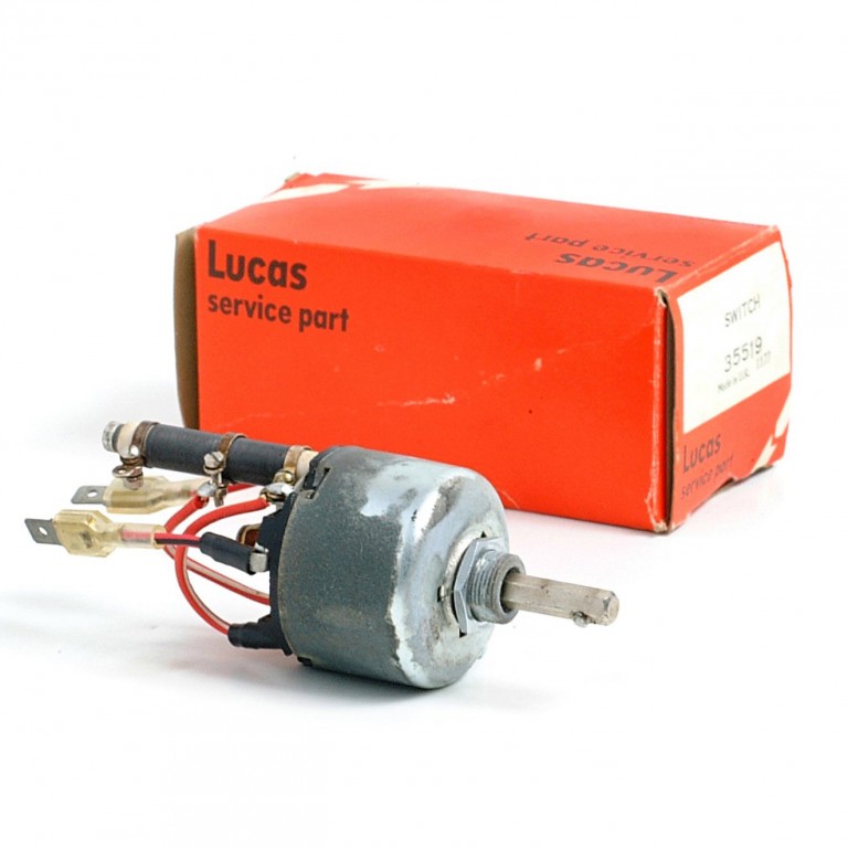 Lucas 35519 Off - pull on - turn on - turn on. Hexagon shaft supplied without a knob. Chrome nut. As fitted to Rolls-Royce, Bentley and others for panel/dash lighting. Knobs listed in this section for hexagon shafts can be used with this Switch.